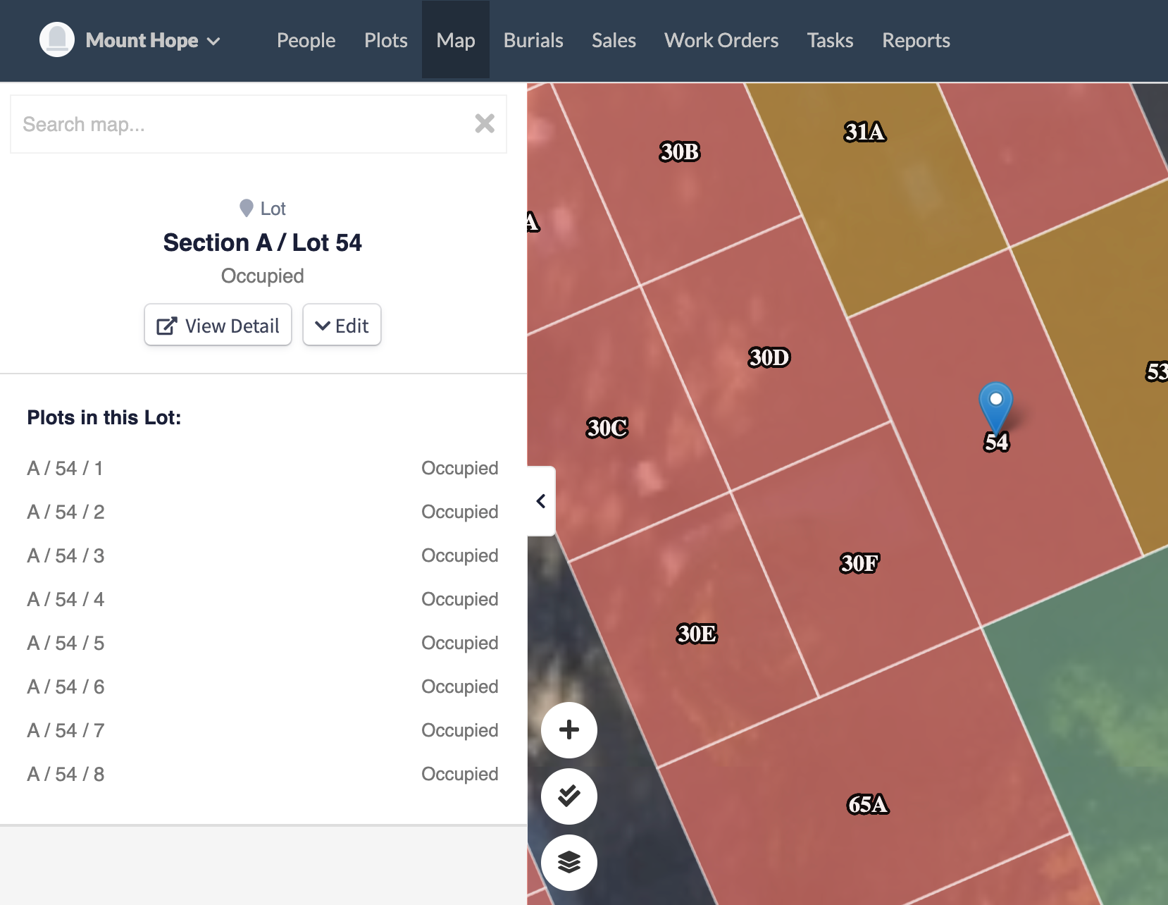 With this approach, you can visually see exactly where each burial is located and tie ownership and records directly to a specific grave on the map.